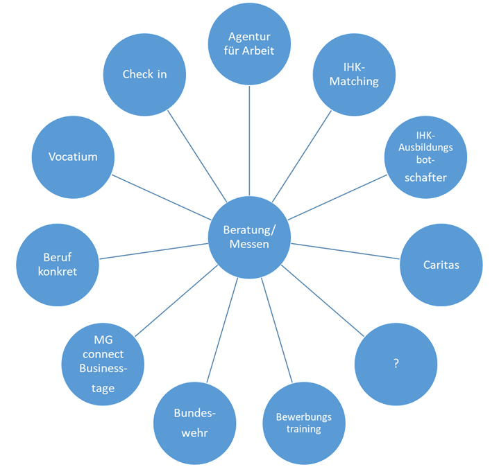 - Beratung durch StuBo, KlassenlehrerInnen, Agentur für Arbeit, Matching der IHK