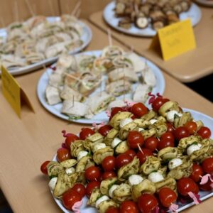 Unsere Aussteller wurden mit einem erstklassigen Snackbuffet versorgt, welches unser 10er-Kurs in Ernährungslehre unter Leitung von Frau Wilms morgens extra für die Messe zubereitet hatte. 🎉🥳😋
